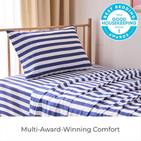 Mellanni Twin Sheets Set - 3 PC Iconic Collection Bedding - Hotel Luxury, Extra Soft, Cooling Bed Sheets - Wrinkle, Fade, Stain Resistant (Twin, Oxford Stripe Blue Nova)