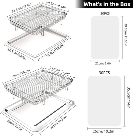 Air Fryer Basket for Oven, Air Fryer Basket and Stainless Steel Baking Tray Pant Oven Air Fryer Pan Rack for Cooking Baking Dishwasher and Broiling (13.1"x9.6" & 15.3"x11.1")