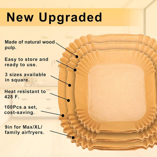 Disposable Air Fryer Paper Liners: 100Pcs 9 In Large Square Non Stick Parchment, Air Fryer Basket Liner for 8Qt - 12Qt Airfryer