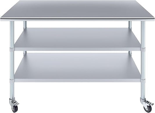 Stainless Steel Work Table with 2 Shelves and Casters | Metal Utility Table On Wheels (60" Long x 30" Deep)