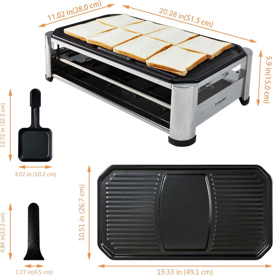 TAMARIT Raclette Cheese Table Grill Portable Electric Indoor Korean BBQ Grill 1400 W Raclette Party Grill with Iron Nonstick Extra Large Grill Plate Raclette Grill for Home Party, Stainless Steel