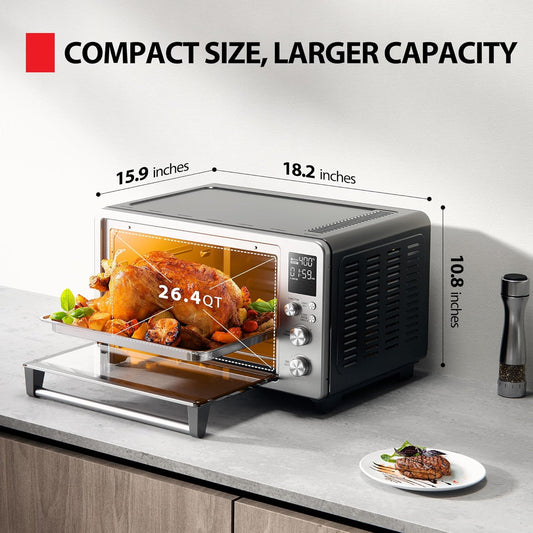 TOSHIBA ChefFry Air Fryer Toaster Oven Combo, 26.4 QT Large Capacity, 12-in-1 Countertop Toaster Oven, Stainless Steel