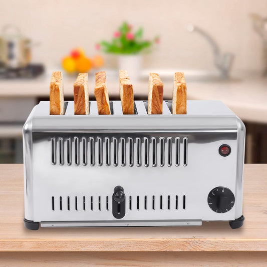 Commercial Toaster 6 Slices Stainless Steel Pop-Up Electric Toaster Machine Cool Touch Toaster Countertop Toaster 6 Slice 5 Minutes Timier Rapid Toaster w/Tray Restaurant