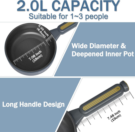 TOPWIT Hot Pot Electric, 2L Electric Pot, Non-Stick Sauté Pan, Portable Cooker for Steak, Egg, Fried Rice, Ramen, Soup with Dual Power Control (Silicone Spatula Included), Grey