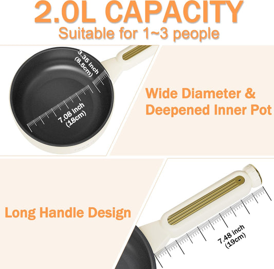 TOPWIT Hot Pot Electric, 2L Multifunctional Electric Pot, Non-Stick Sauté Pan, Portable Pot for Steak, Egg, Fried Rice, Ramen, Soup with Dual Power Control (Silicone Spatula Included), Beige