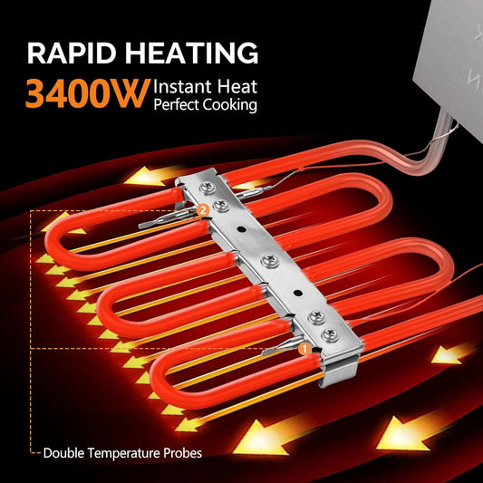ROVSUN 36QT Electric Deep Fryer 240V, 6600W Dual Tank Commercial Deep Fryer w/ 60-Min Timer Overheat Protection Adjustable Feet, Temp Control & Baskets, Stainless Steel Countertop Fryer for Restaurant
