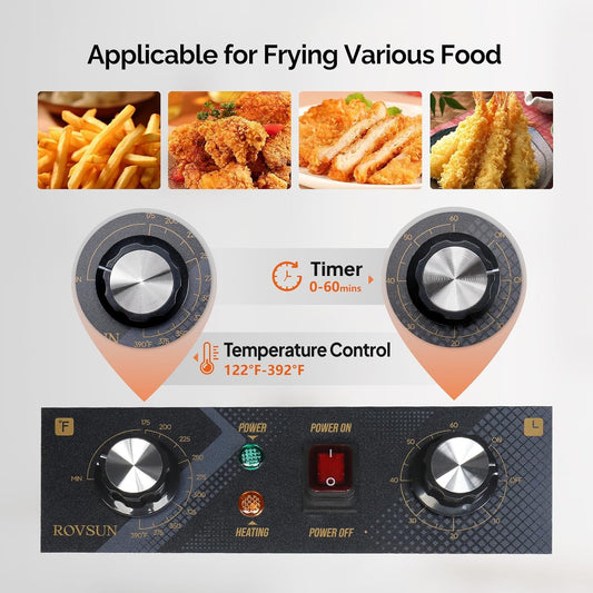 ROVSUN 11.4QT Electric Commercial Deep Fryer with Basket & Lid, Countertop Kitchen Frying Machine, Temperature Adjustable Stainless Steel French Fryer for French Fries Donuts Onion Rings 2500W