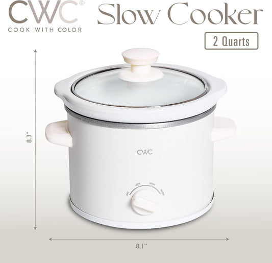 COOK WITH COLOR 2QT Mini Electric Round Slow Cooker - Adjustable Settings, Removable Stoneware Pot, Tempered Glass Lid, Dishwasher Safe, Cool-Touch Side Handles, Cream