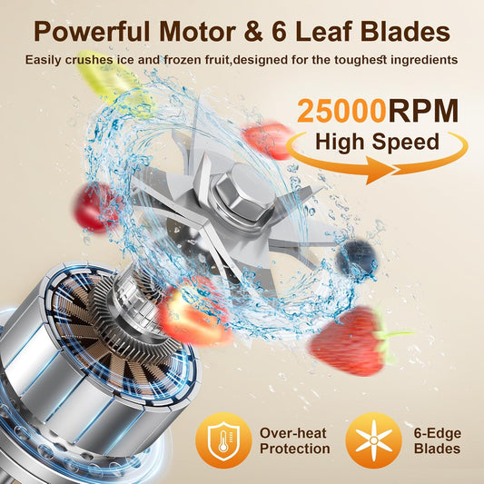 Electric Smoothie Blender, Powerful Small Blender with 2 Portable 20oz Tritan blender Bottles, BPA-Free Personal Blender with 4 Stainless Steel Blades, Mixer Smoothie Maker for Shakes and Smoothies