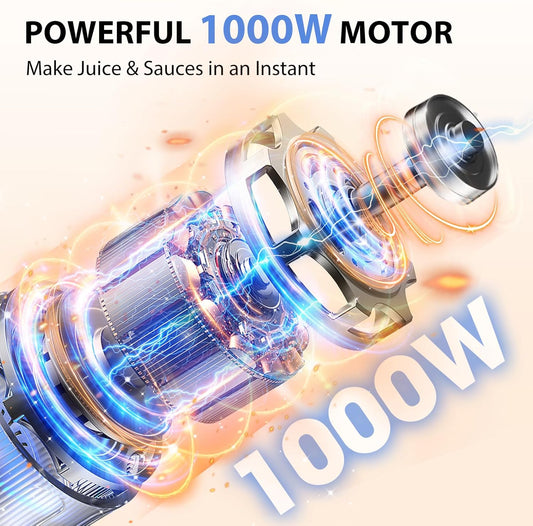 Ganiza 8 in 1 Immersion Blender - 1000W Heavy Duty Motor, 16 Speed Mode Handheld Blender With Stainless Steel Shaft - Includes 8 Total Pieces