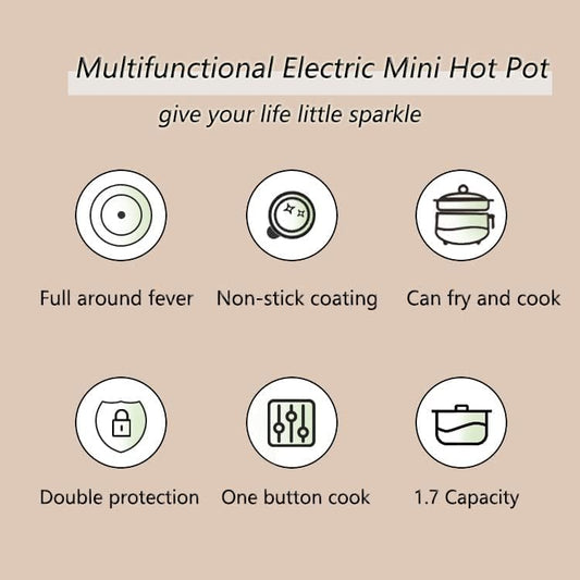 Drizzle Electric Cooker 1.7L - Multifunctional Hot Pot Non-stick Pan - Dorm Office Portable Rapid Ramen Cooker Boil Dry Protection - For Noodles Steak Cooker Eggs Stir-Frying Pasta Oatmeal