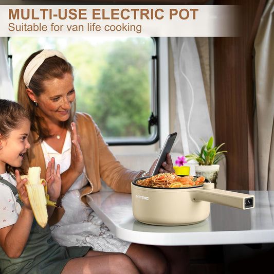HYTRIC Hot Pot Electric, 1.5L Portable Non-stick Frying Pan, Electric Cooker for Steak, Egg, Pasta, Ramen Cooker with Dual Power Control, Mini Electric Pot for Office, Dorm Room Essential, Black