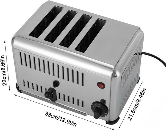 4 Slice Toaster with Wide Slots Commercial Toasters for Restaurant Pop-up Bread Baking Machine 1650W Stainless Steel Toaster Countertop for Toast, Sandwiches, Meatloaf