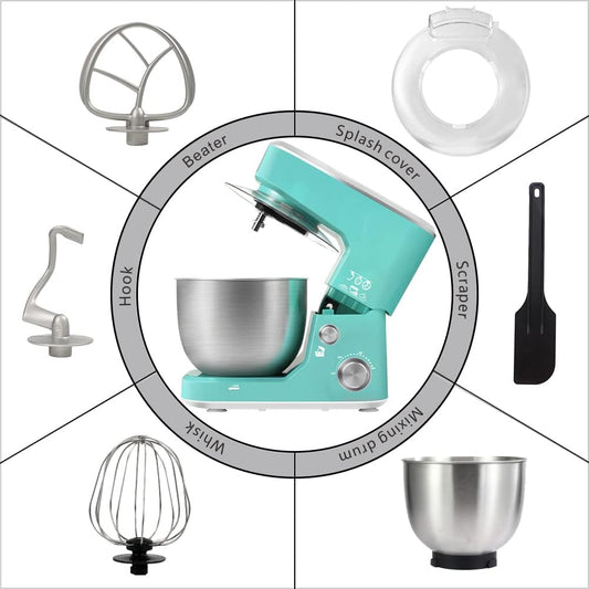 CUSIMAX Stand Mixer, 5-QT Stainless Steel Bowl Food Mixer, Tilt-Head Kitchen Electric Mixer with Dough Hook, Mixing Beater and Whisk, Splash Guard, Green