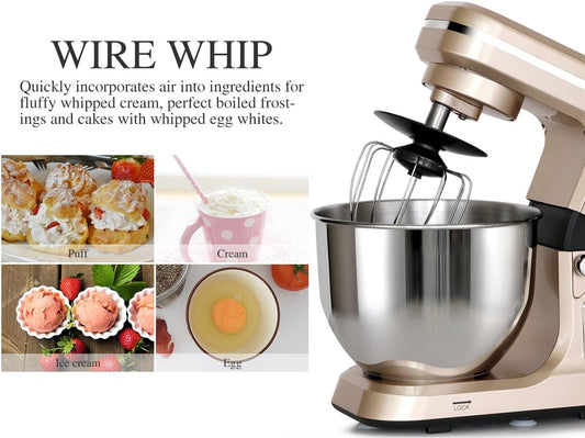 Stand Mixer,5.3-Qt & 500W & 6+P Speed MK36 Tilt-Head Kitchen Electric Food Mixers Home Baking Dough Machine with Accessories (Champagne)