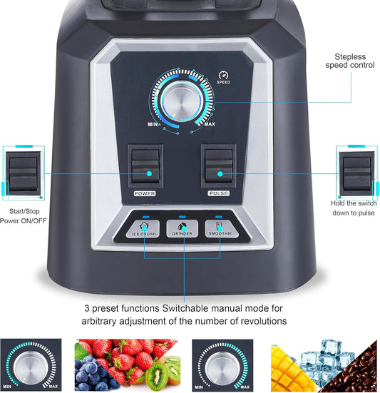 BioloMix Professional Countertop Blender - High Power 2200W Blender for Kitchen, Commercial, Smoothies, Frozen Fruits, Soup, Juice
