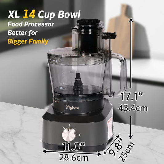 14 Cup Food Processor, French-Fry-Cutter, Blending, Mixing, Shredding, and Slicing, Meat and Vegetable Chopping, Doughing for Home Use, Mincing, and Pureeing,4 Speeds,600W