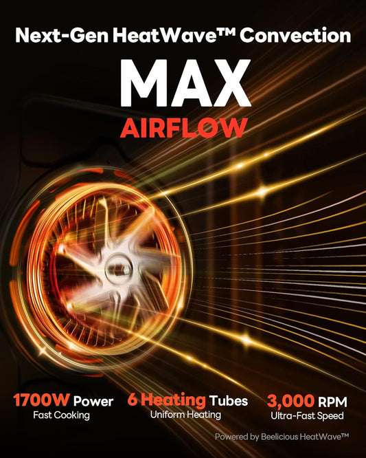 28QT Air Fryer Toaster Oven Combo, Large 12-in-1 Convection Countertop Oven with Next-Gen HeatWave Convection, 3-Layer Cooking, Rotisserie for Chicken, Fits 11" Pizza, Full Accessories, Sparkle Black