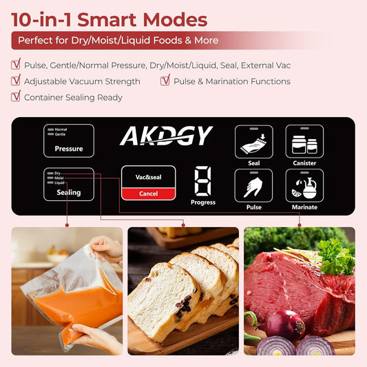 95Kpa Powerful Precision Pro Vacuum Sealer, with 10-in-1 Functions, Easy-Lock Handle, Double Heat Seal & Double Pump, Vacuum Sealer Machine for Food with Bags Storage, Built-in Cutter, Stainless Steel