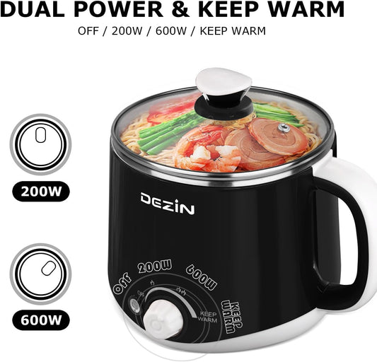 Dezin Electric Pot, 1.6L Ramen Cooker, Hot Pot Electric Stainless Steel, Multifunctional Cooker for Egg, Pasta, Soup, Porridge, Oatmeal with Temperature Control and Keep Warm Function