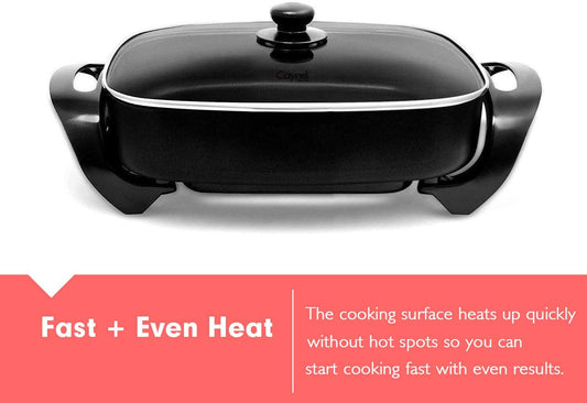 Caynel 12 x 12 Inch Nonstick Ceramic Electric Skillet with Glass Lid, Aluminum Body, 1400-Watts, Adjustable Temperature Controller Goes Up to 460 Degrees for Fry, Bake, Steam or Simmer, Easy to Clean