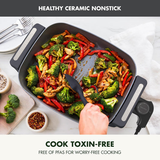 GreenPan Advanced 12” X 15” Electric Skillet with Lid, 7QT Capacity for Family Meals, Healthy Ceramic Nonstick PFAS-Free Coating, Fry, Sauté, Steam, Simmer, Sear, Stir Fry, Dishwasher Safe, Graphite