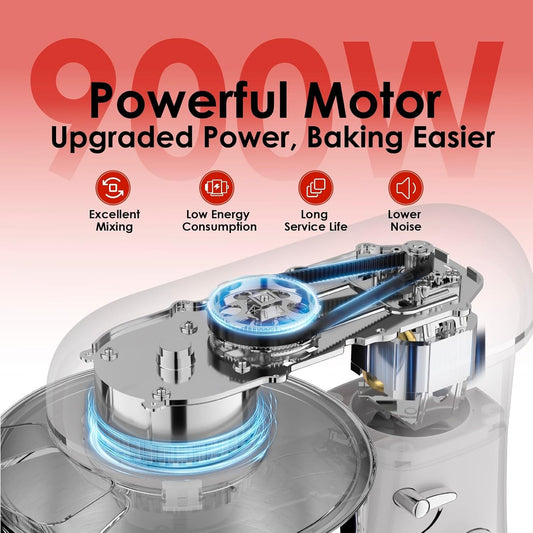 Kitchen in the box Stand Mixer, 900W 8.5QT Kitchen Electric Mixer, 6-Speed Large Capacity Food Mixer for Home Cooks with Egg Whisk, Dough Hook & Flat Beater (Red)