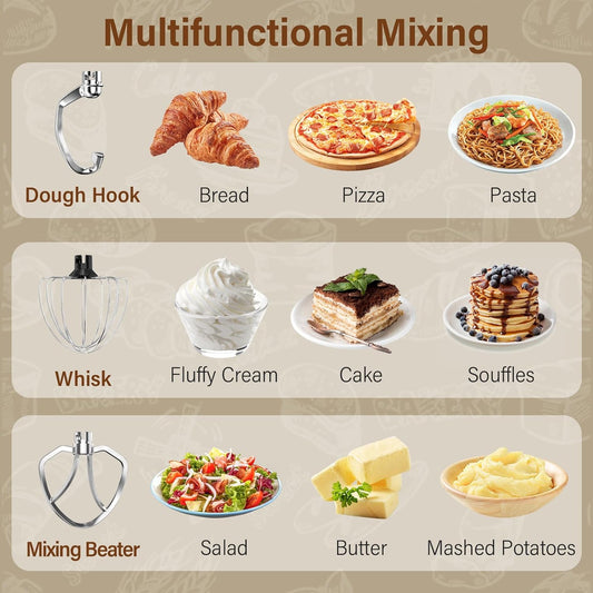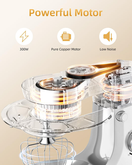 HOWORK Electric Stand Mixer,10+p Speeds With 6.5QT Stainless Steel Bowl,Dough Hook, Wire Whip & Beater,for Most Home Cooks,Cream White