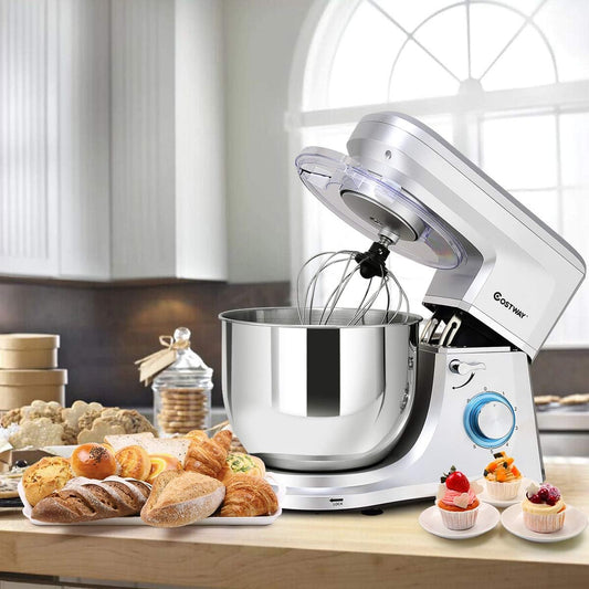 COSTWAY Stand Mixer, 7.5-Quart 660W 6-Speed Electric Mixer with Stainless Steel Bowl, Tilt-head Food Mixer with Dough Hook, Beater, Whisk (Sliver)