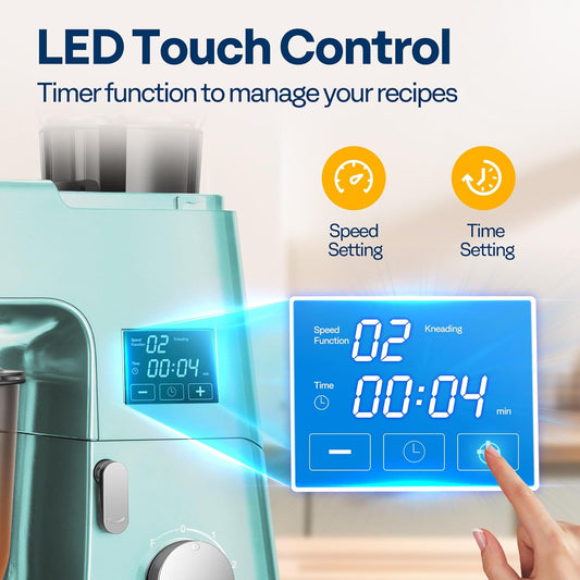 ZACME Mixers Kitchen Electric Stand Mixer 5.5QT 600W, Aluminum die casting and Gears, Dual Cooling System, Low Noise, DC Motor, LED Display and Timing Function, Tilt-head Metal Food Mixer, Grey