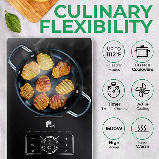 EconoHome Superconductor Portable Electric Stove - 1500W Extra Thin (0.71") & Suitable for All Types of Cookware Portable Cooktop with Touch Panel, Timer, Adjustable Heating Power, Auto-Shutdown