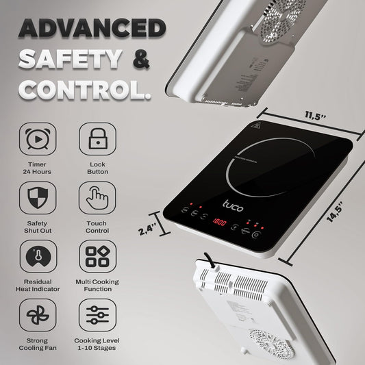 TUCO Portable Induction Cooktop Burner Hot Plate Electric Stove with Shatter-Proof Ceramic Glass, LCD Sensor Touch, ETL Certified, 20 Cooking Modes, 1800 Watts