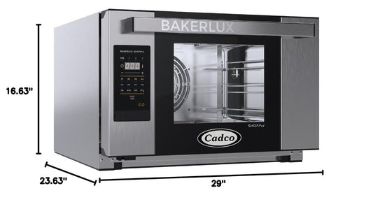 Cadco XAFT-03HS-GD 23-5/8" Bakerlux GO Half-Size Heavy-Duty Countertop Digital Convection Oven for Restaurant Hotel Food Truck Concession Kiosk, 3 Shelves, Stainless Steel, 120V, NSF