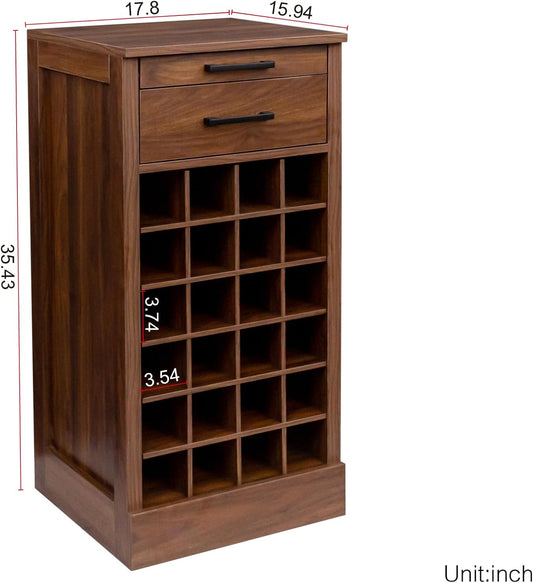 WERSMT 6-Tier Wine Rack Freestanding Floor with 2 Drawers, 24 Bottles Wood Wine Rack Counter for Small Space, Farmhouse Stackable Modular Wine Bottle Holder Rack, Walnut