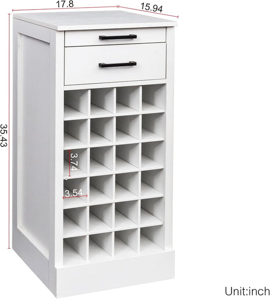 WERSMT 6-Tier Wine Rack Freestanding Floor with 2 Drawers, 24 Bottles Wood Wines Racks Counter for Small Space, Farmhouse Stackable Modular Wine Bottle Holder Rack, White