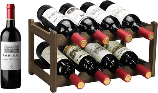 Wine Rack 8 Bottle 2-Tier Eco-Friendly Bamboo Wine Storage Easy-Assembly Space-Saving for Wine Lovers,Kitchen Wine Organizer for Countertop,Pantry, Home,Room Decor,Bar