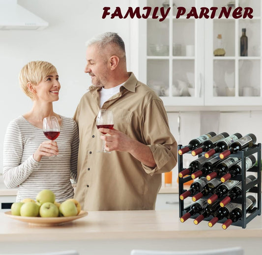 Bamboo Wine Rack, Sturdy and Durable Wine Storage Cabinet Shelf, Wine Racks Countertop for Pantry - 3 Tiers 12 Bottle Wine Rack, Black