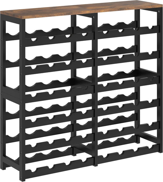 6 Tier Bamboo Wine Rack with Table Top, Freestanding 48-Bottle Wine Storage Shelf, Wine Display for Kitchen, Bar, Dining Room, Living Room, Rustic Brown and Black