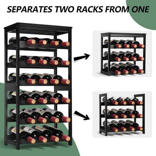 6 Tier Bamboo Wine Rack Freestanding Floor, 24 Bottles Wine Storage Shelves with Table Top, Stackable Wine Display Rack for Kitchen, Bar, Dining Room, Black