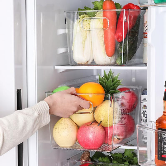Set of 8 pack Clear Plastic Storage Bins, Pantry Organization and Storage, Clear Organizing Bins for Kitchen Organization, Freeze Storage, Home Edit and Cabinet Organizers (8Large)