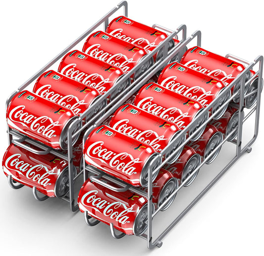 Soda Can Organizer Storage Rack, 2 Pack Stackable Beverage Soda Can Dispenser Organizer Holder for Refrigerator, Cabinet, Pantry (Silver)