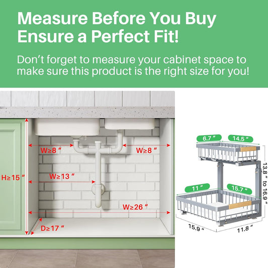 bukfen Under Sink Organizer, Pull Out Cabinet Organizer 2-Tier Slide Out Sliding Shelf Under Cabinet Storage Multi-Use for Under Kitchen Bathroom Sink Organizers and Storage