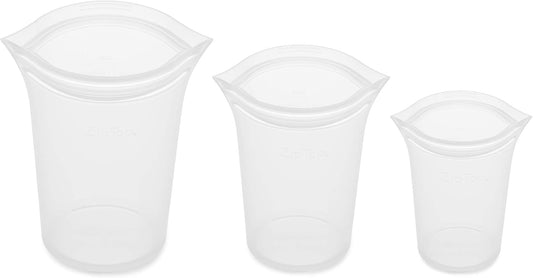 Zip Top Reusable Food Storage Bags | 3 Cup Set [Frost] | Silicone Meal Prep Container | Microwave, Dishwasher and Freezer Safe | Made in the USA