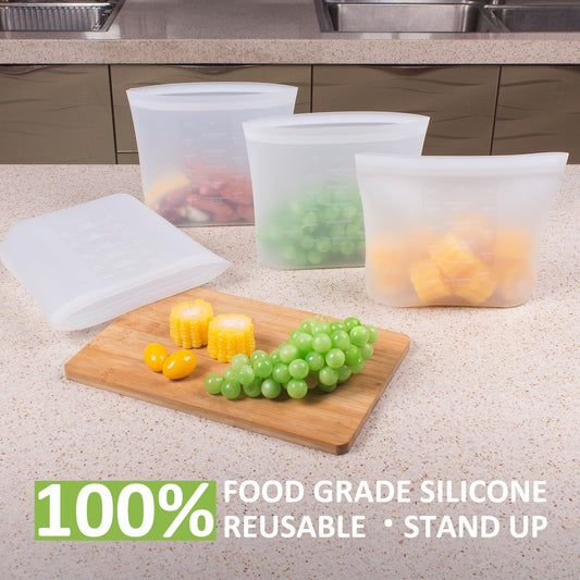 Silicone Bags for Food Storage, Reusable Zip Lock Silicone Food Storage Containers Stand Up Snack Bags, Freezer Microwave Oven Dishwasher Safe, Plastice BPA-Free 3 Pack(40oz 20oz 12oz)