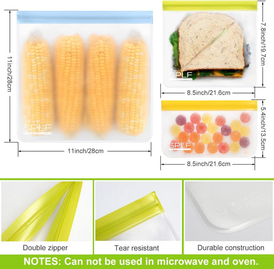 SPLF 12 Pack Dishwasher Safe Reusable Food Storage Bags (5 Sandwich 5 Snack 2 Gallon), BPA Free Freezer Bags Leakproof Silicone and Plastic Free Lunch Bags Fridge Organization