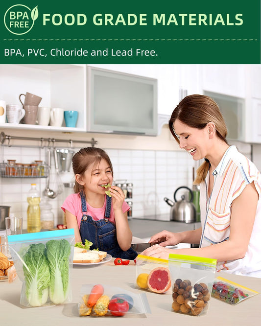SPLF 9 Pack Reusable Gallon Freezer Bags Dishwasher Safe, BPA Free 1 gallon Leakproof Silicone and Plastic Free Food Storage Bags for Meal Prep, Fruits, Sandwich, Snack, Travel Items - Muticolor