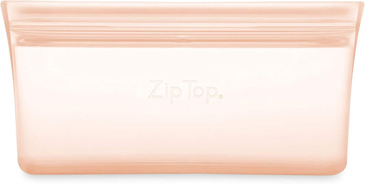 Zip Top Reusable Food Storage Bags | Snack Bag [Peach] | Silicone Meal Prep Container | Microwave, Dishwasher and Freezer Safe | Made in the USA