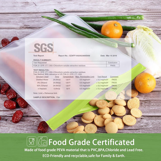 Reusable Silicone Food Storage Bag, for Microwave, Oven, Fridge, Freezer & Sous Vide Zip Sealed Containers (2 Large size 53oz 1500ml)…