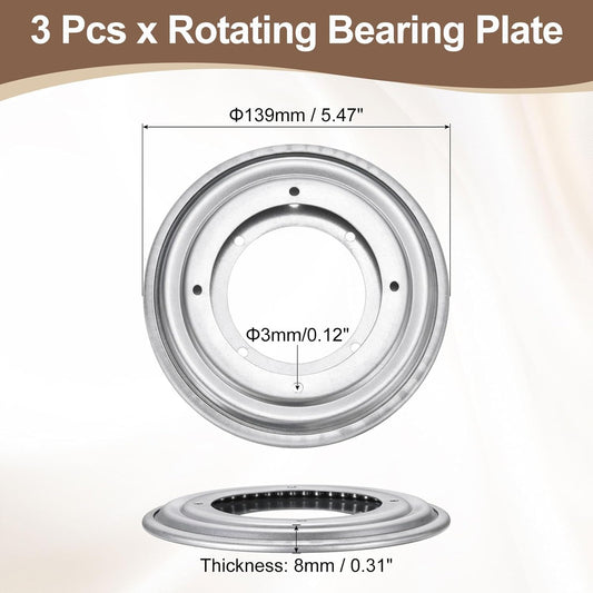 uxcell 3Pcs 5.5 Inch Rotating Bearing Plate, Swivel Plate Stand Lazy Susan Hardware Round Turntable Base Tray for Table Serving Tray Revolving Shelve, Silver