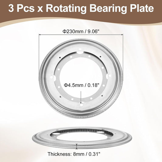 uxcell 3Pcs 9 Inch Rotating Bearing Plate, Swivel Plate Stand Lazy Susan Hardware Round Turntable Base Tray for Table Serving Tray Revolving Shelve, Silver
